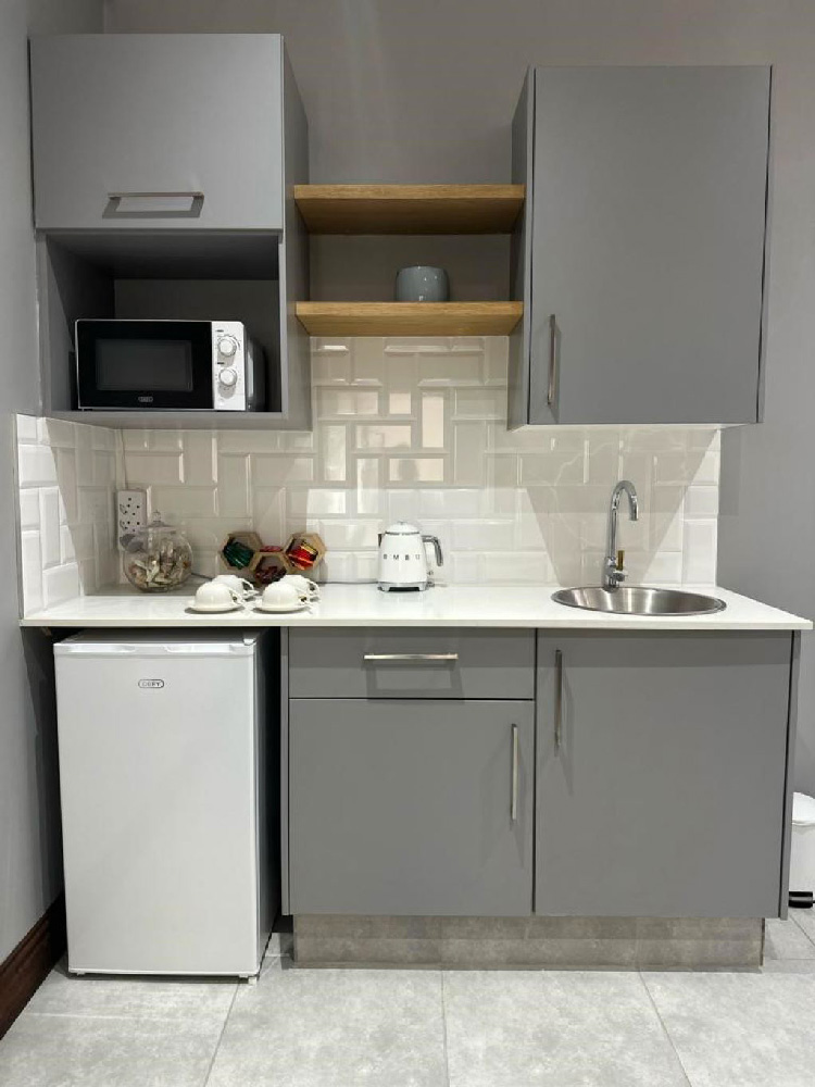 Guests can make meals in the kitchenette that features a refrigerator, kitchenware, a microwave and a tea and coffee maker. A seating area with a flat-screen TV, a desk and a private bathroom are available in this spacious double room. The unit has 1 bed.